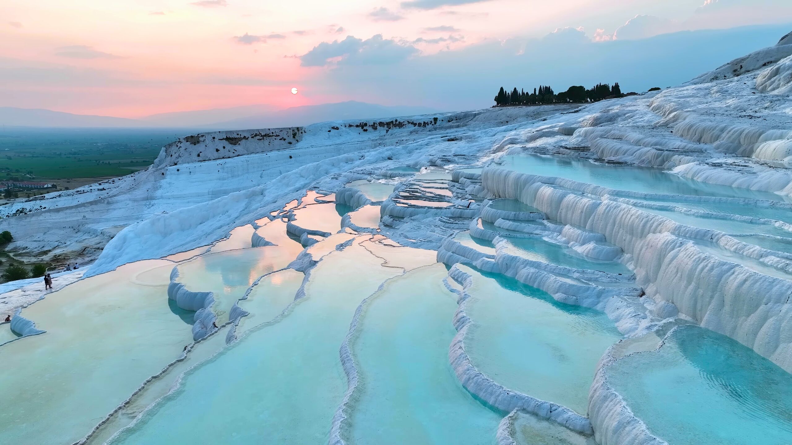 Pamukkale, dalam bahasa Turki berarti “istana kapas” atau Cotton Castle, merupakan pusat turis di Denizli,Turki barat daya yang terkenal dengan teras travertine dan memiliki luas kurang lebih 2.700 meter.